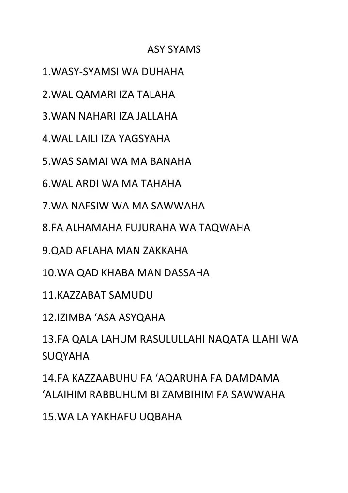 Bacaan surah ad dhuha rumi jawi dan terjemahan wirid dan doa . Setiap bacaan dipermudahkan dengan transliterasi rumi dan kelebihan solat sunat. Surah asy syams rumi (91).